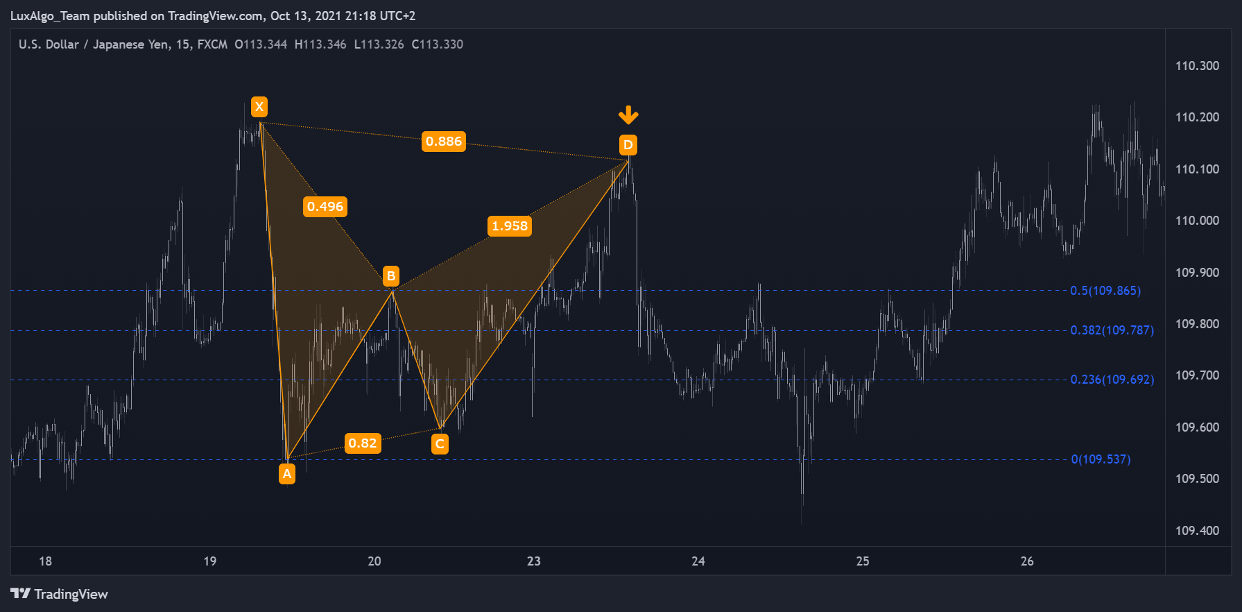 - 1 - Segment AB retraces within 38.2% and 50% of the XA segment (some less strict conditions only require a retracement within 38.2% and 61.8%).